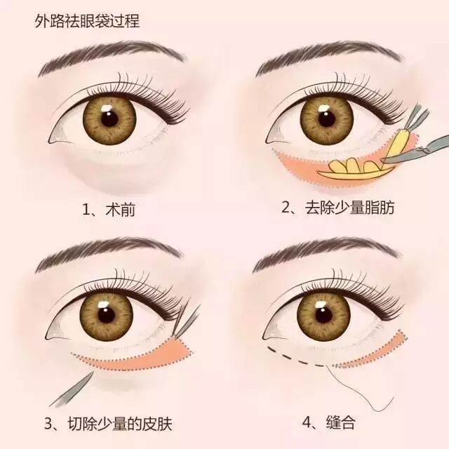 因为护肤品对消除眼袋没有用,所以我们通常采用手术方法。